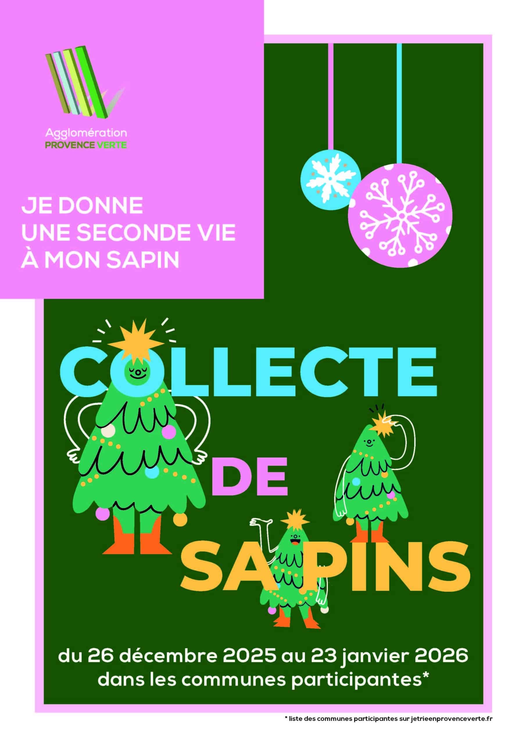 Jusqu'au 23 janvier 2026, la commune de Garéoult, en partenariat avec l’Agglomération Provence Verte, vous donnent rendez-vous pour la collecte de vos sapins de Noël !