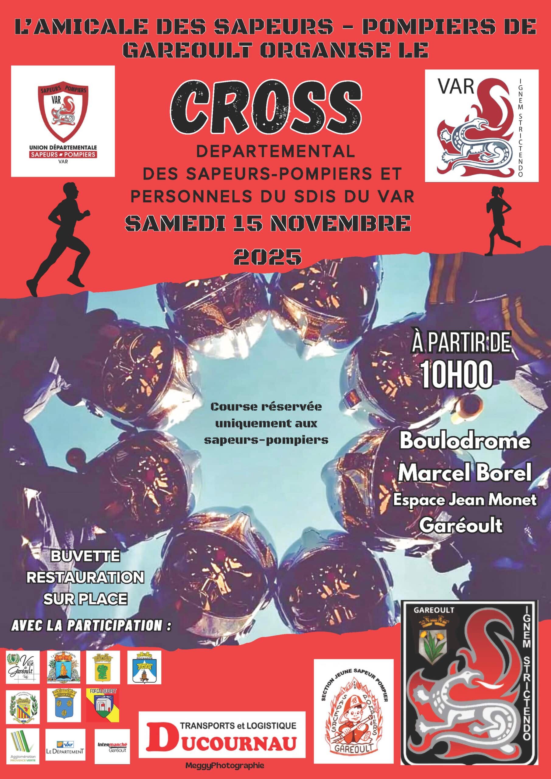 SAMEDI 15 NOVEMBRE, la Ville de Garéoult accueille la 70ème édition du Cross départemental des Sapeurs-Pompiers du Var organisée par l’Amicale des Sapeurs-Pompiers de Garéoult et le SDIS du Var.
