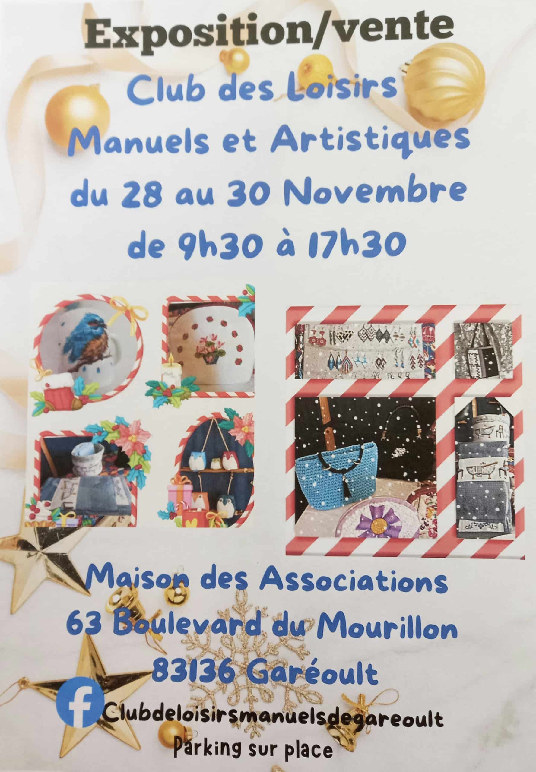 du 28 au 30 novembre venez admirer les réalisations des membres du club : peintures, travaux d’aiguilles, objets décoratifs, vaisselle, créations artisanales et bien d’autres idées cadeaux uniques et faites main.