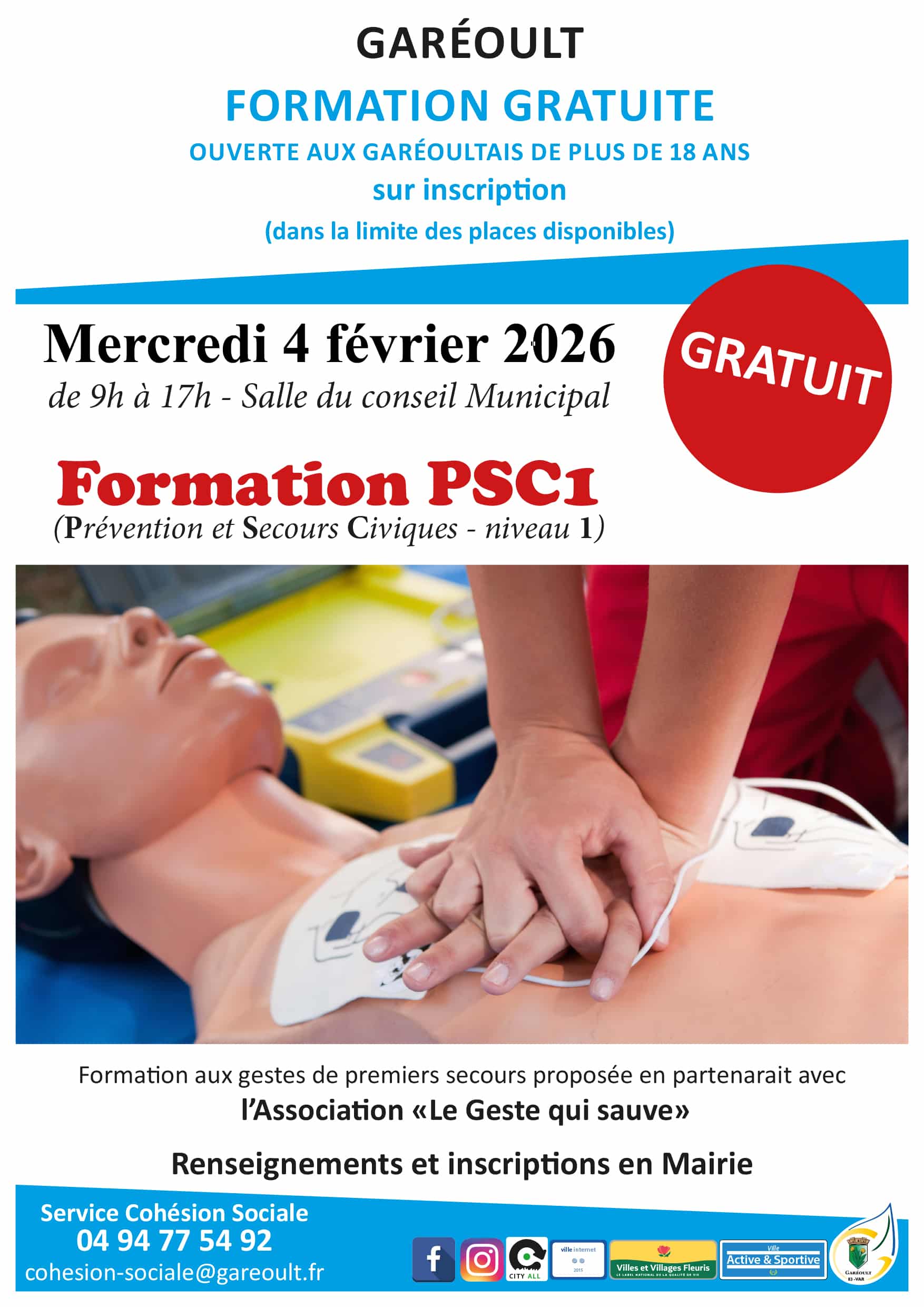 Formation aux gestes de premiers secours - PSC1 (Prévention et Secours Civique - Niveau 1) proposée en partenariat avec l'Association "Le geste qui sauve"