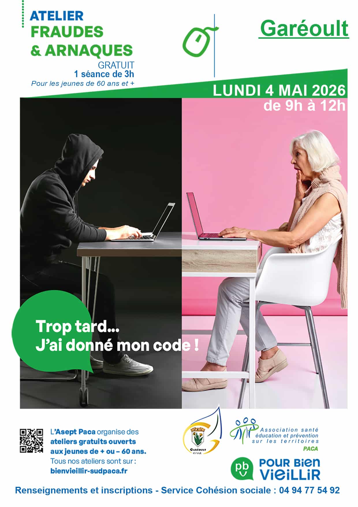 La commune de Garéoult vous propose en partenariat avec l’ASEPT, un atelier « Fraudes & arnaques » qui se compose d’une seule session de 3h00.