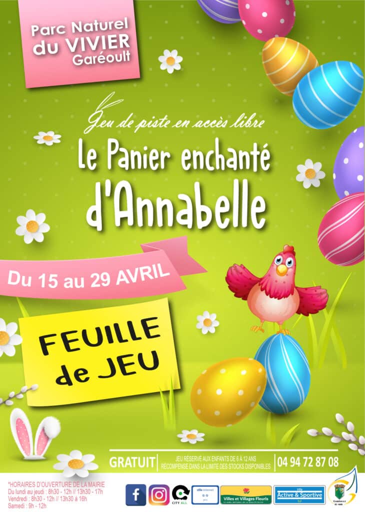Pour aider Annabelle à le retrouver, viens chercher ta feuille de jeu en Mairie*, ou télécharge-la ci-dessous (prochainement), et rends-toi au Parc du Vivier**.