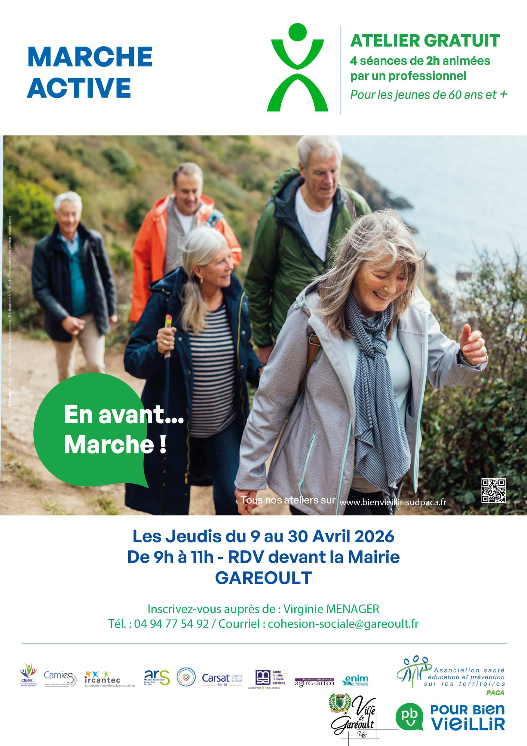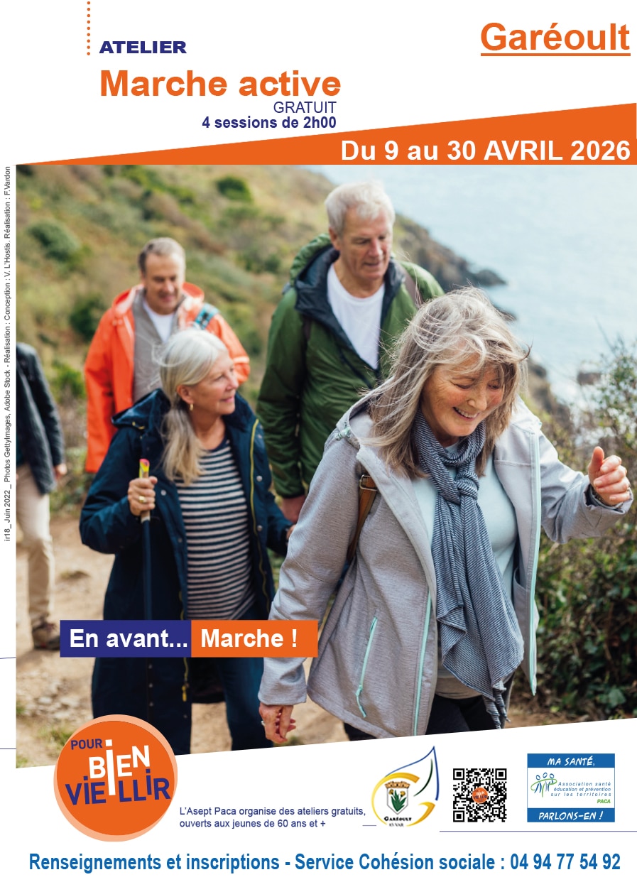 La commune de Garéoult vous propose en partenariat avec l’ASEPT, un atelier « Marche active » qui se compose en 4 sessions de 2h00.
