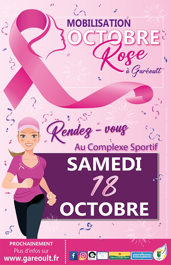 Rendez-vous vêtus de rose, pour prendre part à la grande mobilisation organisée en faveur de la lutte contre le Cancer du sein par la Ville de Garéoult et le Centre Communal d'Action Sociale en partenariat avec les Associations Locales, les bénévoles, la Ligue, l'UFOLEP et le soutien du Département du Var et de la MGEN.