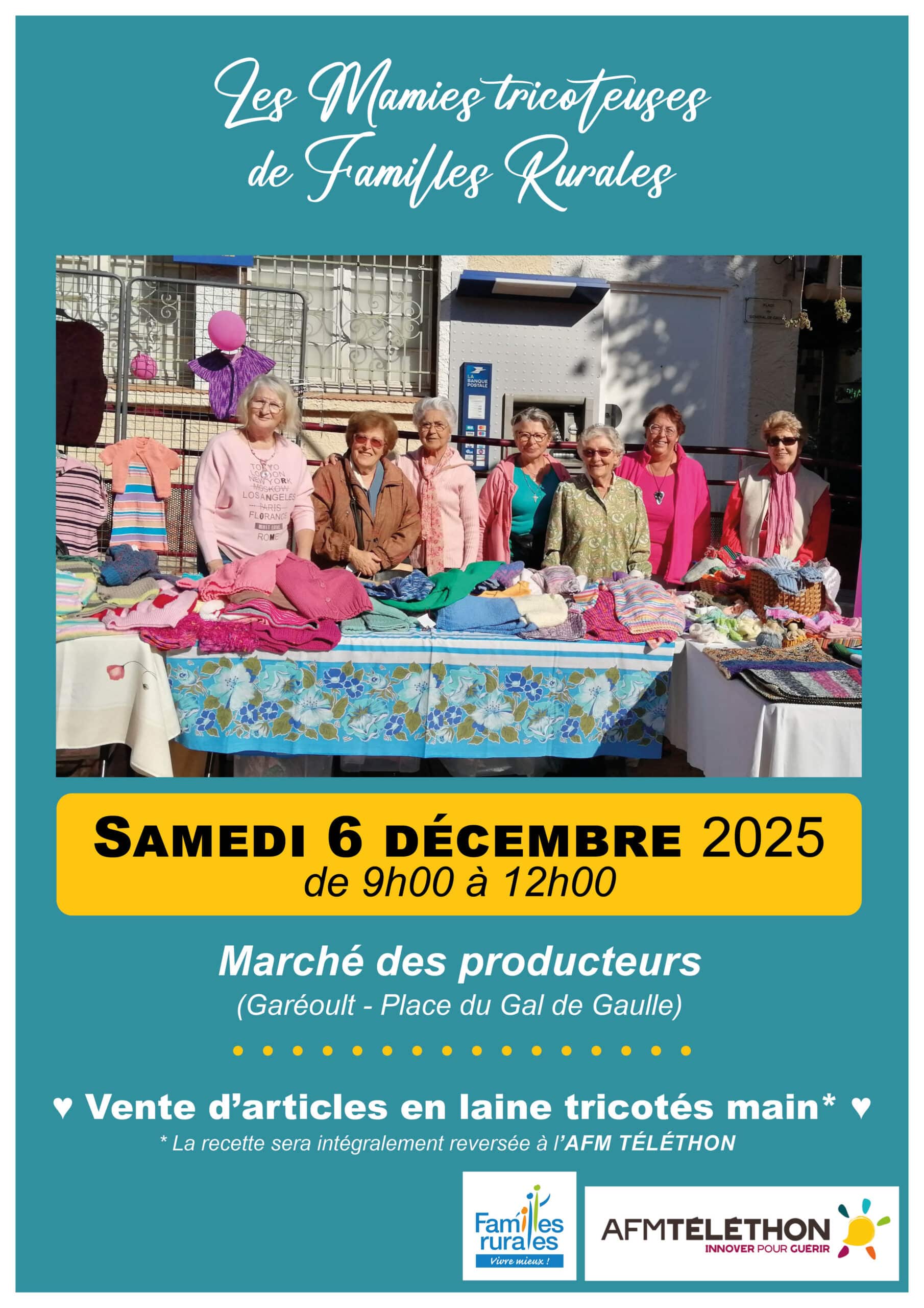 Samedi 6 décembre, les mamies tricoteuses de l'Association Familles Rurales de Garéoult seront mobilisées dans le cadre du Téléthon.